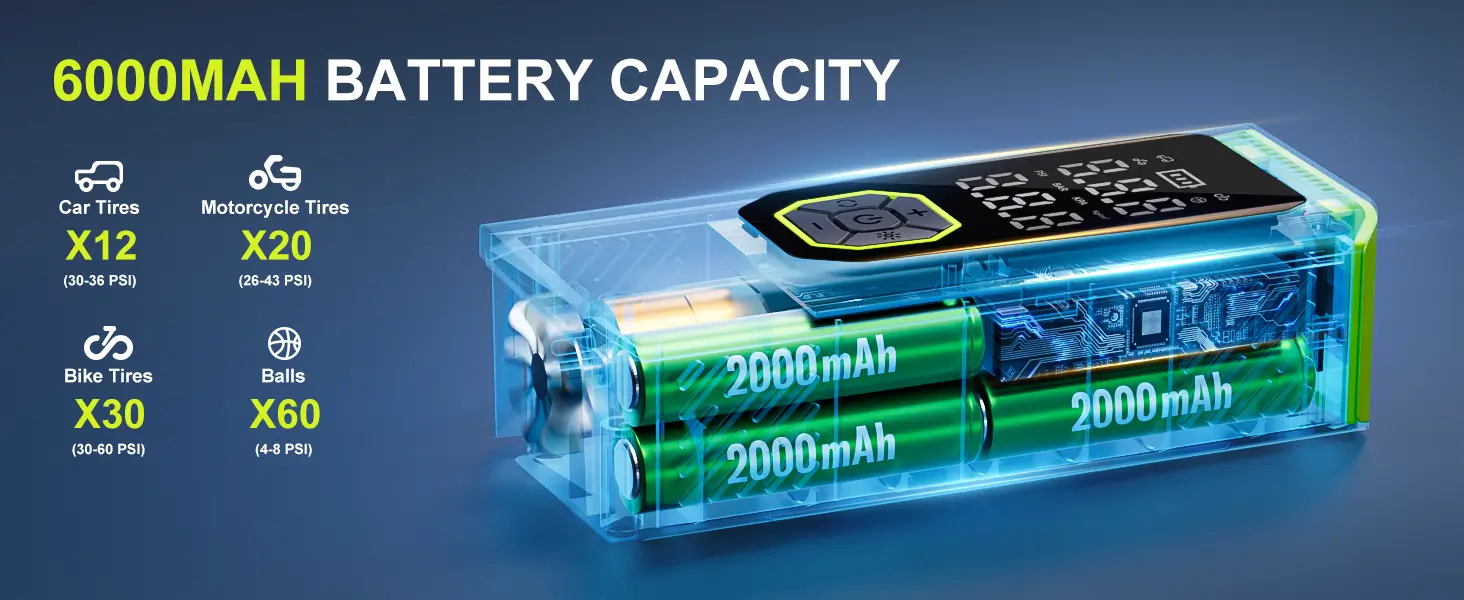 Powered by a premium 6000mAh rechargeable battery, the AP02 delivers impressive inflation performance: